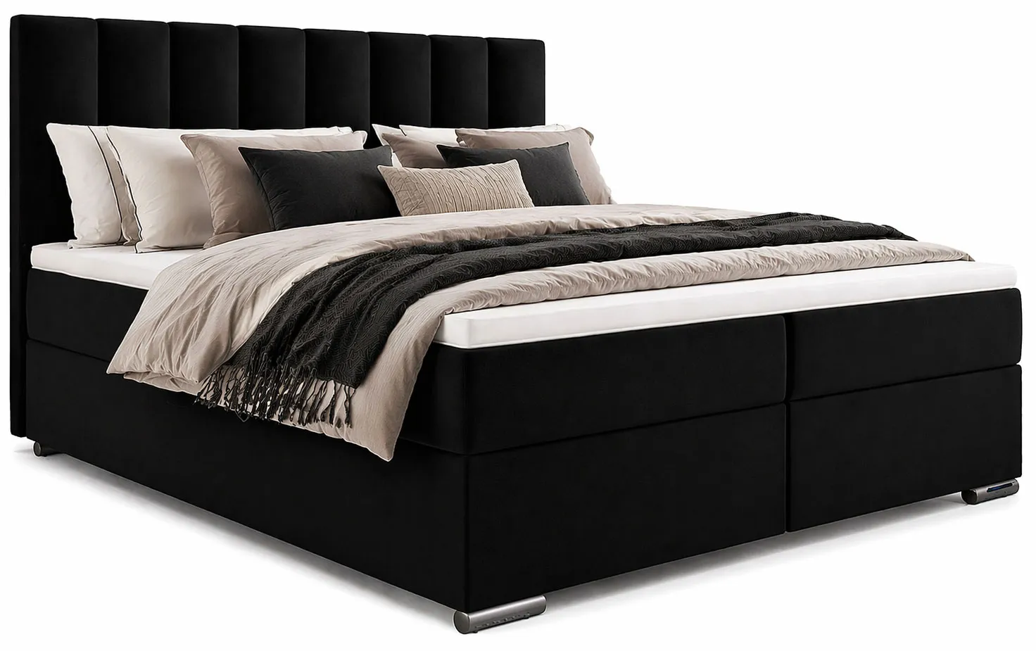 Czarne łóżko tapicerowane welurem 3 rozmiary - Zavire