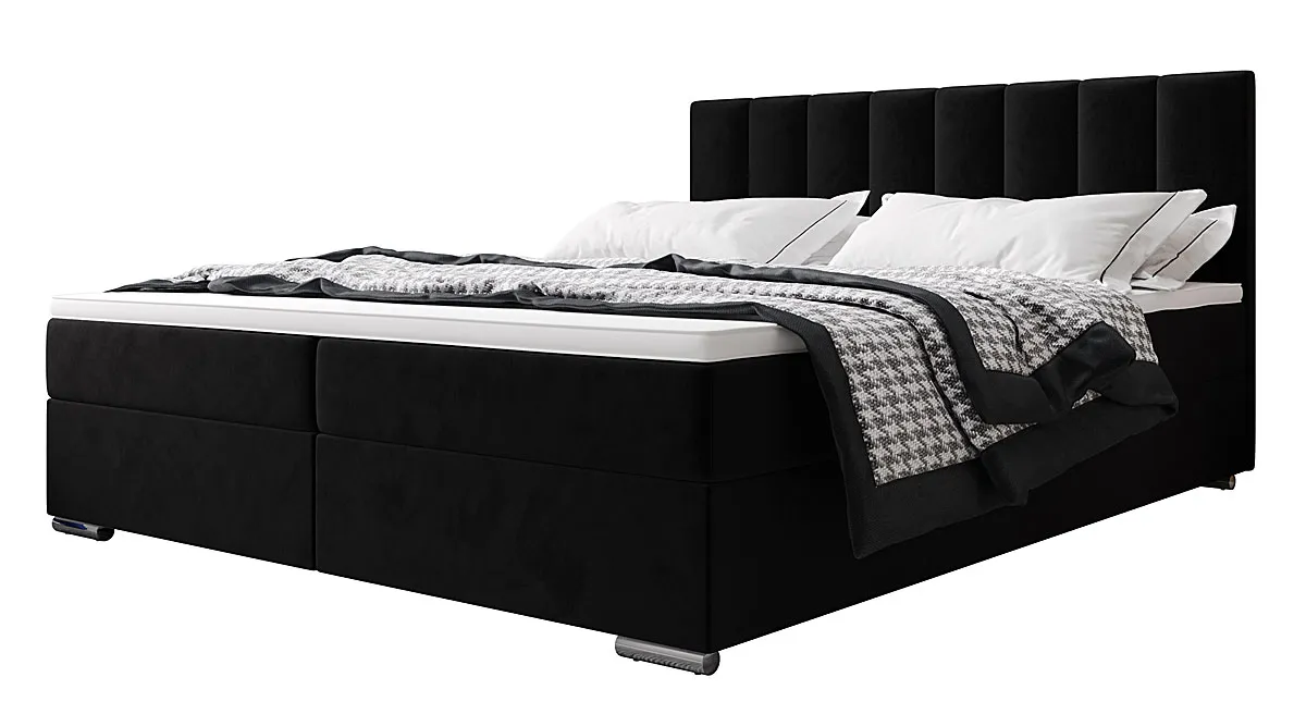 Czarne łóżko tapicerowane welurem 3 rozmiary - Zavire