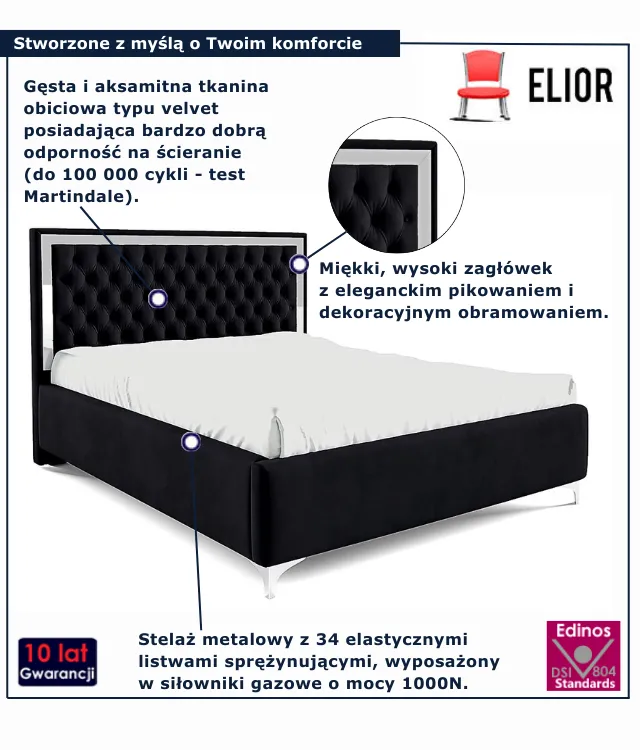 • Metalowe nóżki w kolorze dopasowanym do listwy na zagłówku.