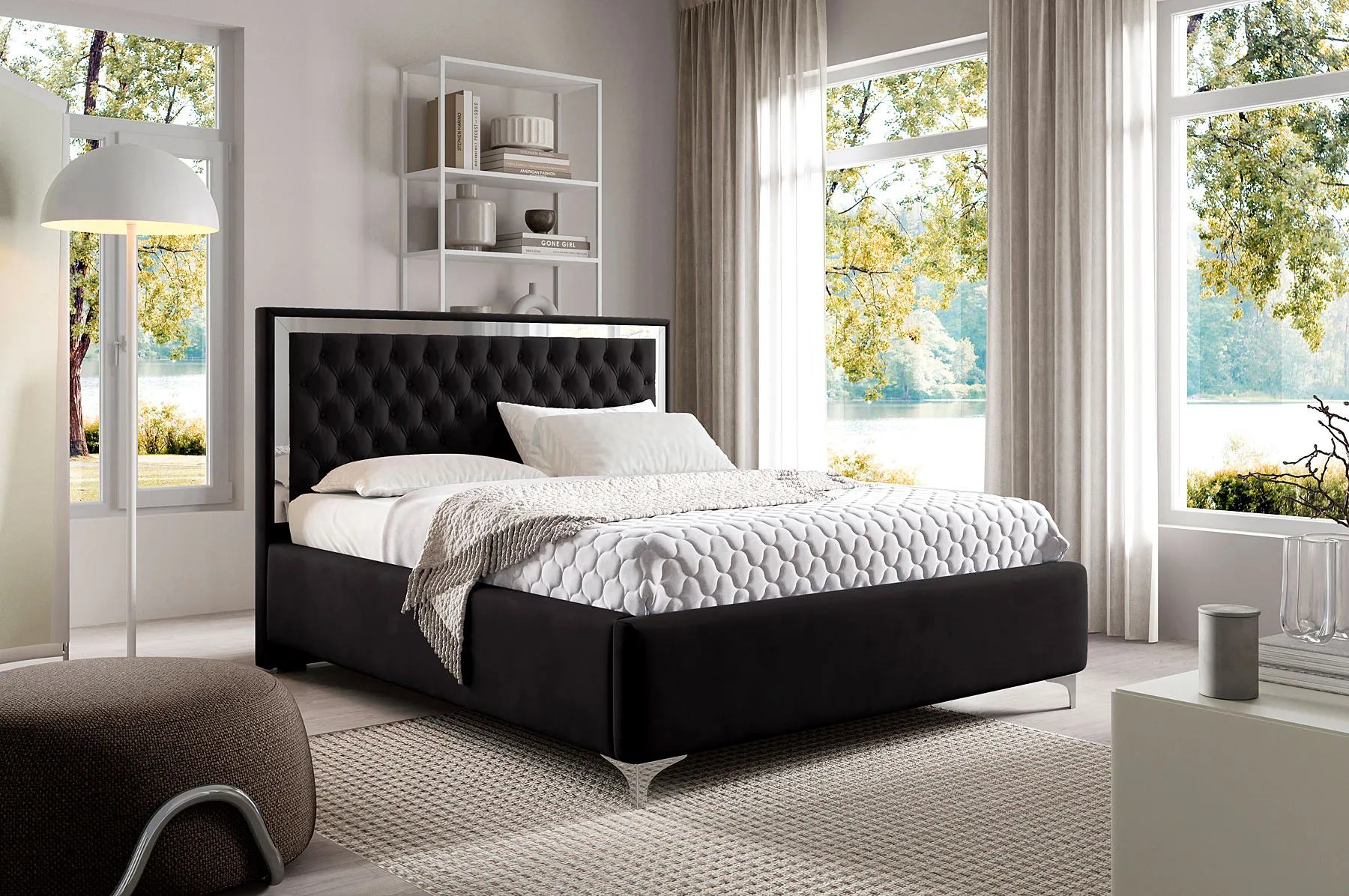 Czarne łóżko w stylu glamour z pojemnikiem na pościel - Mardano 3X