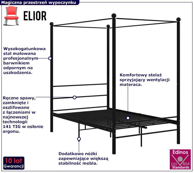 • Kolor: czarny. W naszej ofercie posiadamy także inne łóżka metalowe.  Kliknij i stwórz swój wyjątkowy zestaw mebli.