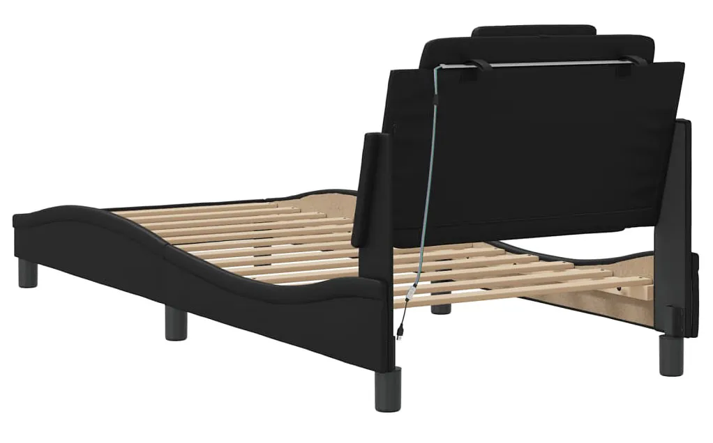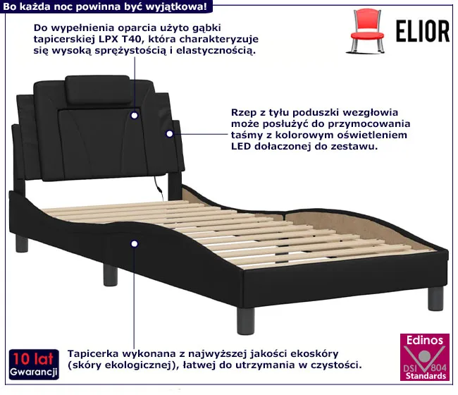 Czarne łóżko z ekoskóry z podświetleniem LED 90x190 - Izmo 3X