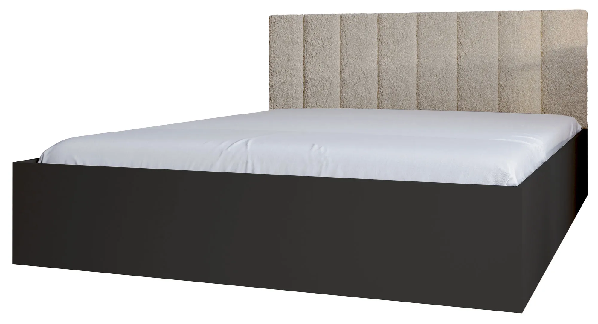Czarne łóżko z beżowym zagłówkiem i materacem Berigi 4X
