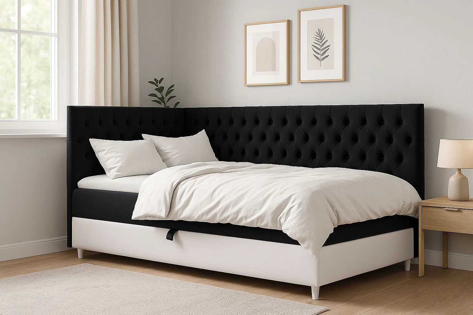Dotyczy: Brązowe łóżko z pojemnikiem na pościel 3 rozmiary - Velmari
