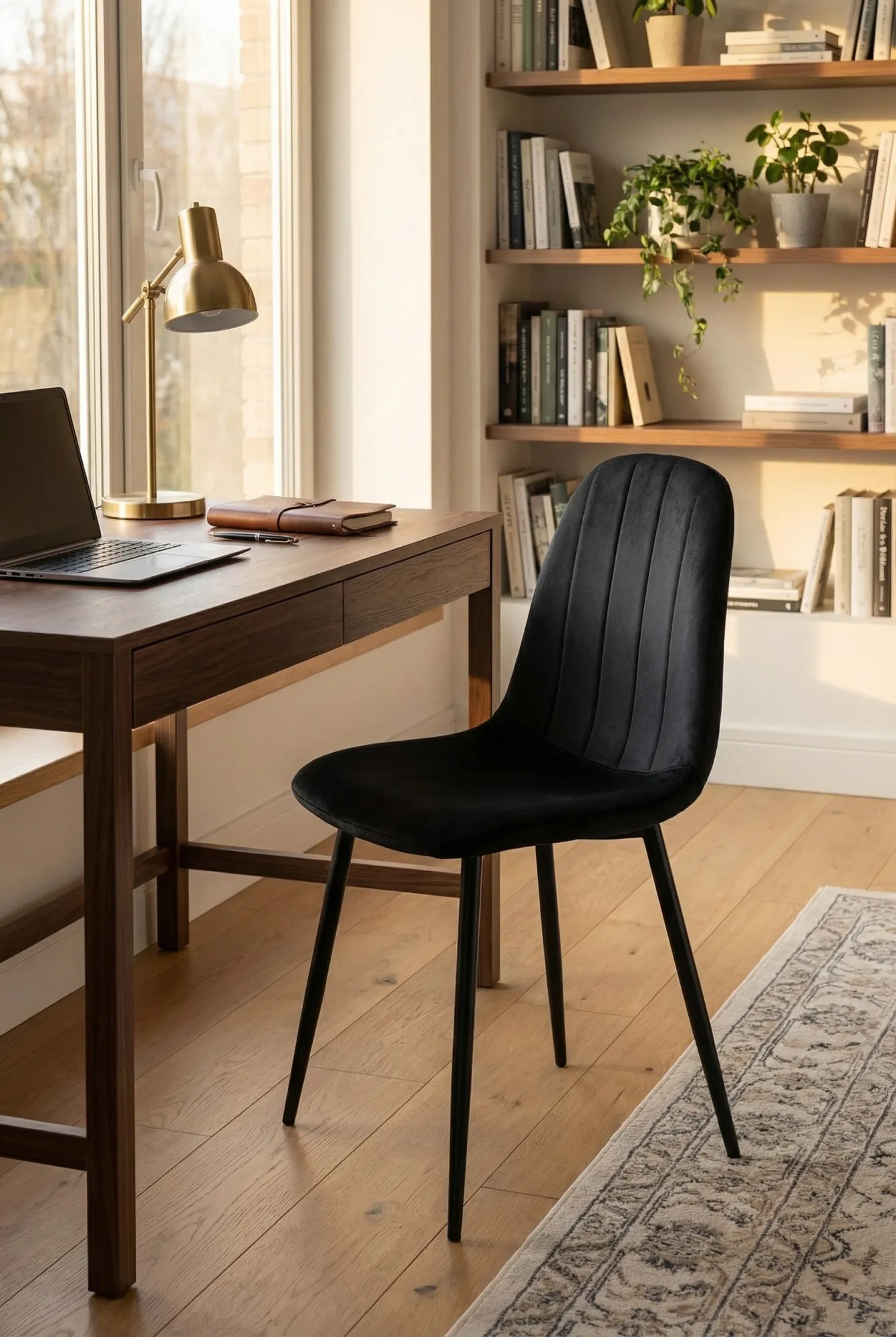 Czarne welurowe krzesło Oret 3X w nowoczesnym wnętrzu
