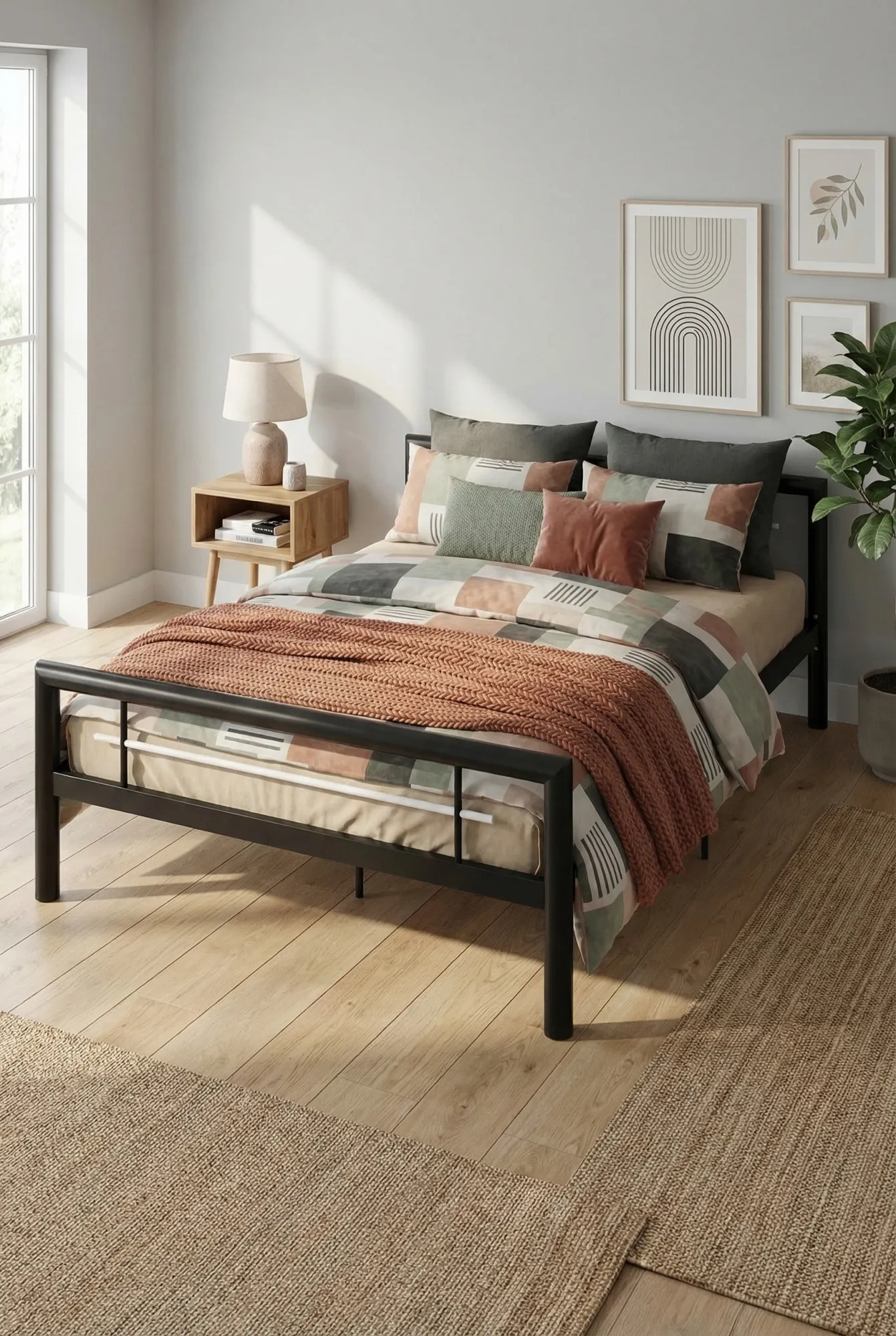 To świetny wybór dla osób ceniących minimalistyczny styl i trwałość. Metalowa rama jest stabilna i dobrze wykonana, a czarne wykończenie nadaje całości wyrazistego charakteru. Łóżko wygląda lekko, ale jednocześnie jest bardzo solidne i sprawdza się w codziennym użytkowaniu.