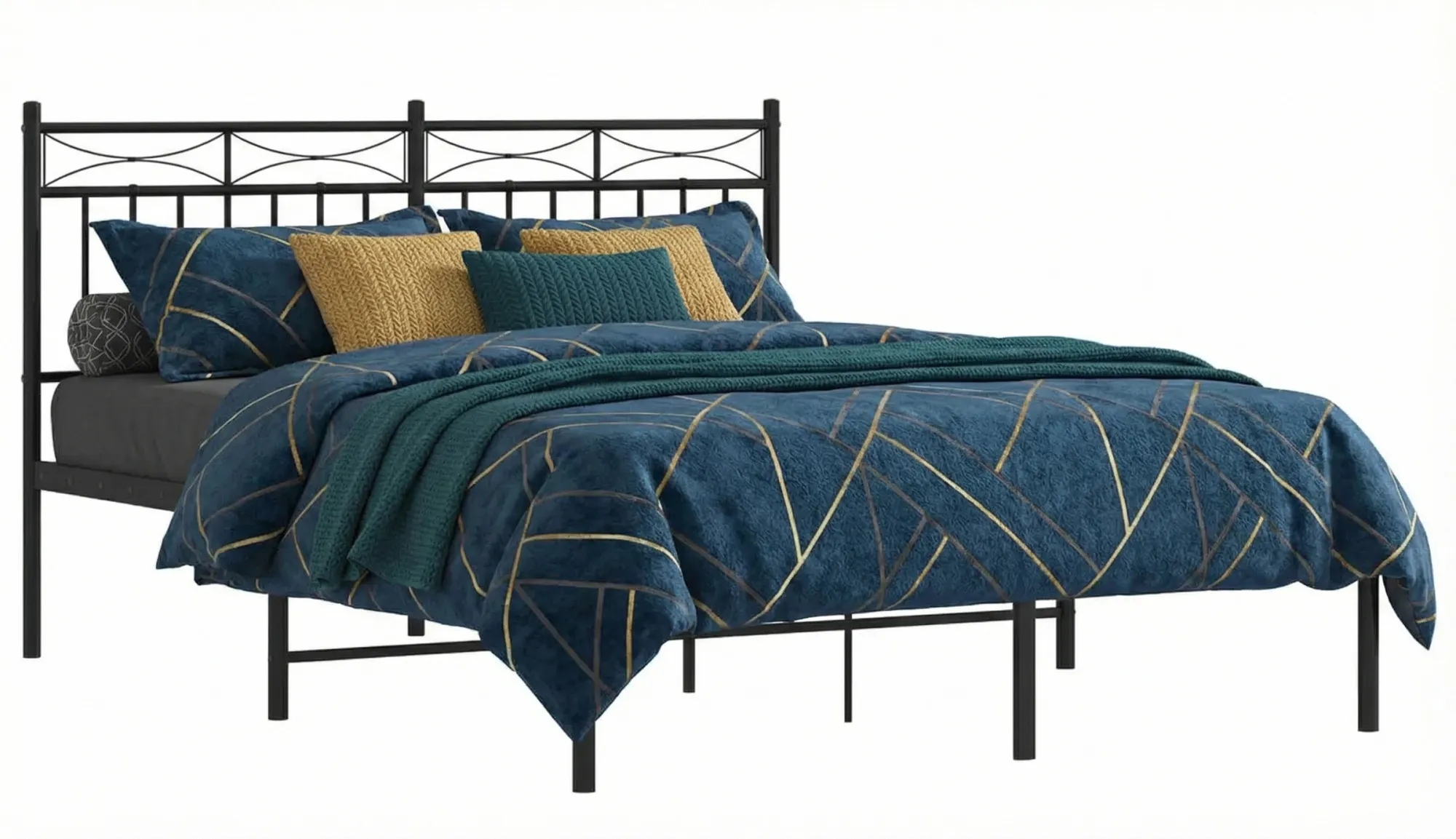 • Wizualna harmonia: stalowa rama łóżka wprowadza do wnętrza nutę nowoczesnego minimalizmu z nutą industrialnego charakteru, doskonale komponując się z różnorodnymi paletami kolorystycznymi i wzornictwem.
