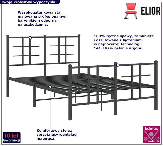 • Kolor: Czarny. W naszej ofercie posiadamy także inne łóżka metalowe.  Kliknij i stwórz swój wyjątkowy zestaw mebli.