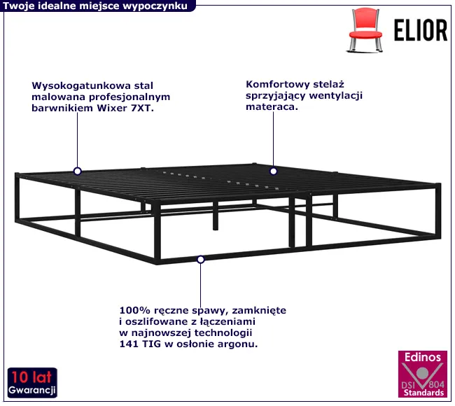 • Kolor: czarny. W naszej ofercie posiadamy także inne łóżka metalowe. Kliknij i stwórz swój wyjątkowy zestaw mebli.