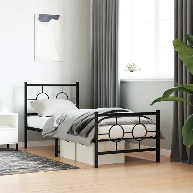 Czarne metalowe łóżko loftowe z zagłówkiem 80x200 cm - SLIM