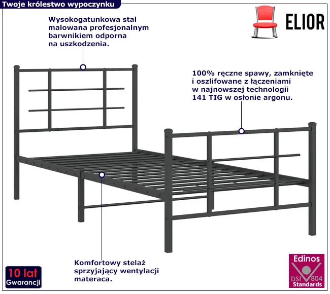 • Kolor: Czarny. W naszej ofercie posiadamy także inne łóżka metalowe.  Kliknij i stwórz swój wyjątkowy zestaw mebli.