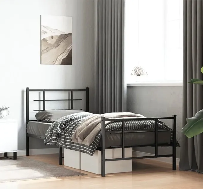 Czarne metalowe łóżko małżeńskie 100x200cm - Alester