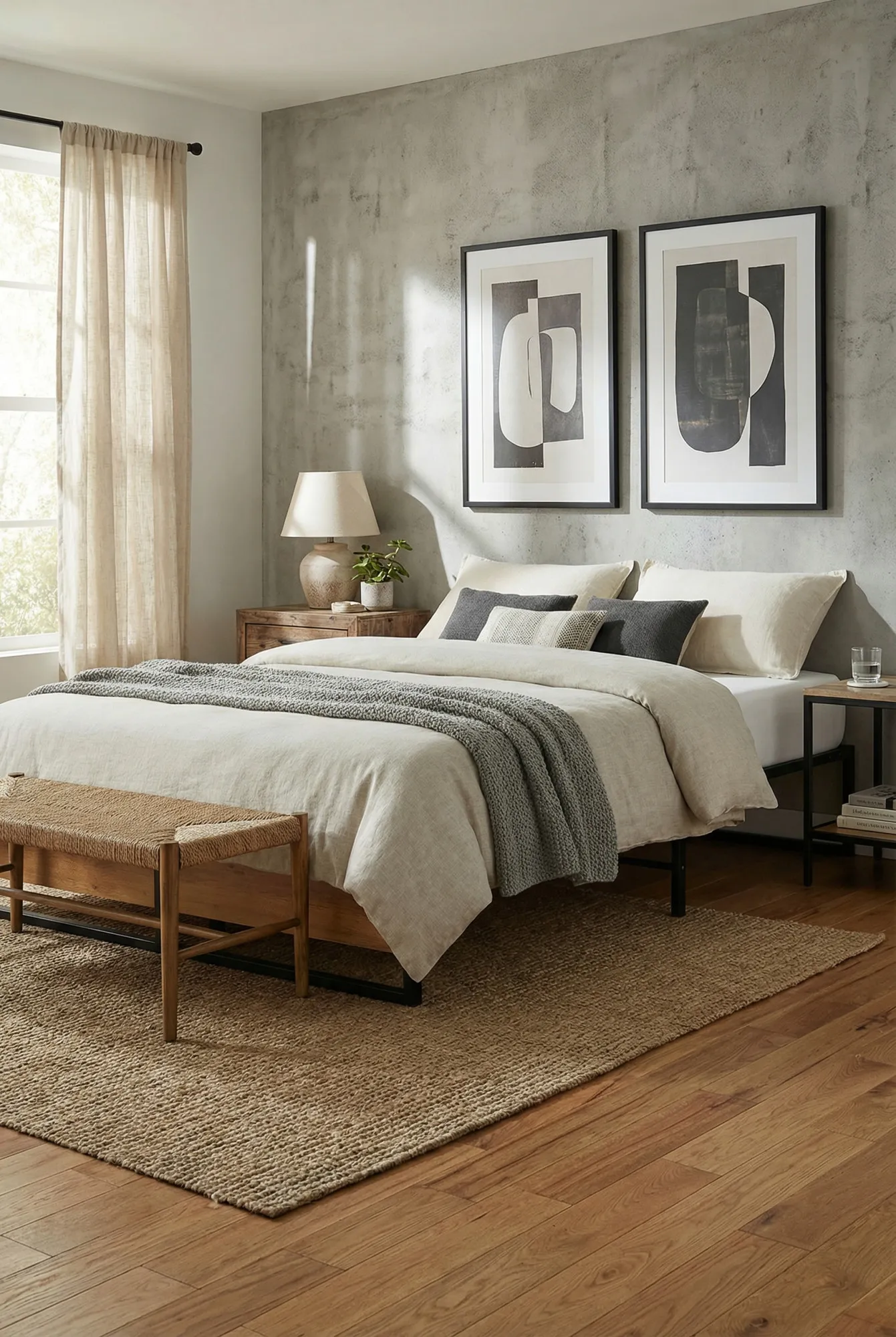 Aranżacja sypialni z metalowym łóżkiem Glider