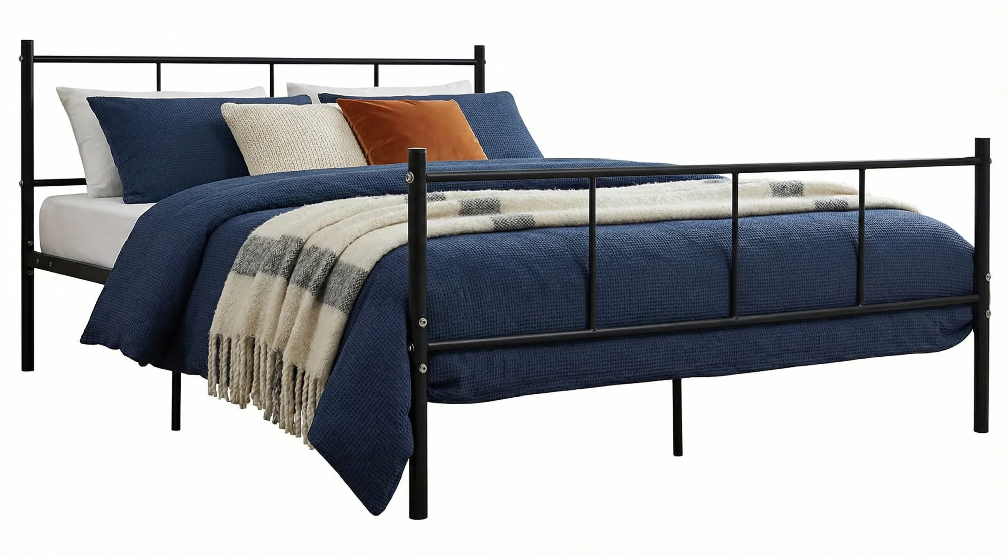 Czarne metalowe łóżko małżeńskie 140x200 cm - Kalea