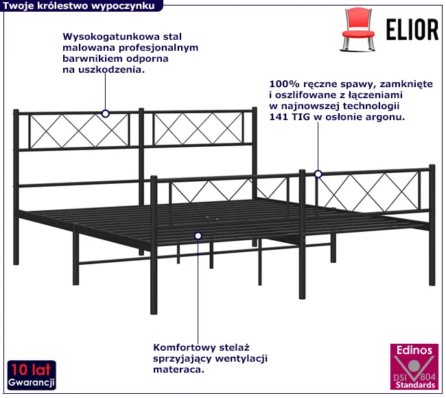 • Kolor: Czarny. W naszej ofercie posiadamy także inne łóżka metalowe.  Kliknij i stwórz swój wyjątkowy zestaw mebli.