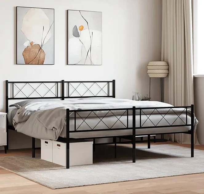 Czarne metalowe łóżko małżeńskie 160x200cm - Raffa