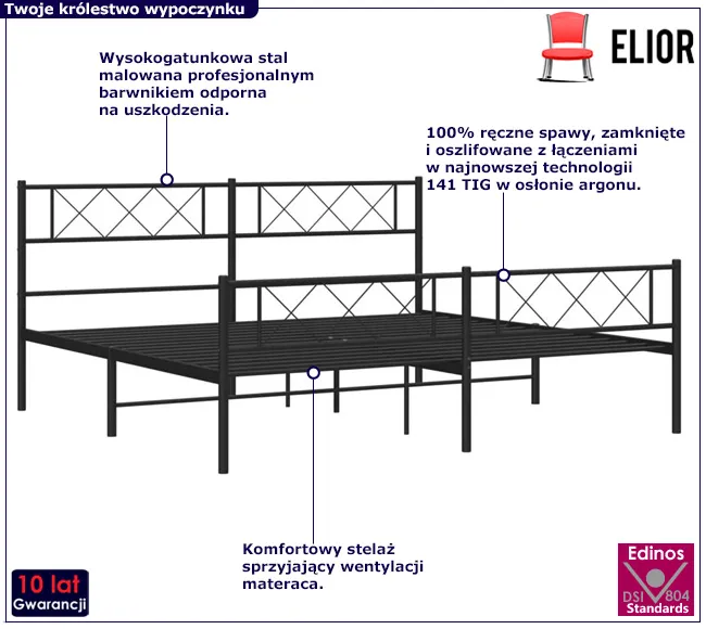 Czarne metalowe łóżko małżeńskie 180x200cm - Raffa