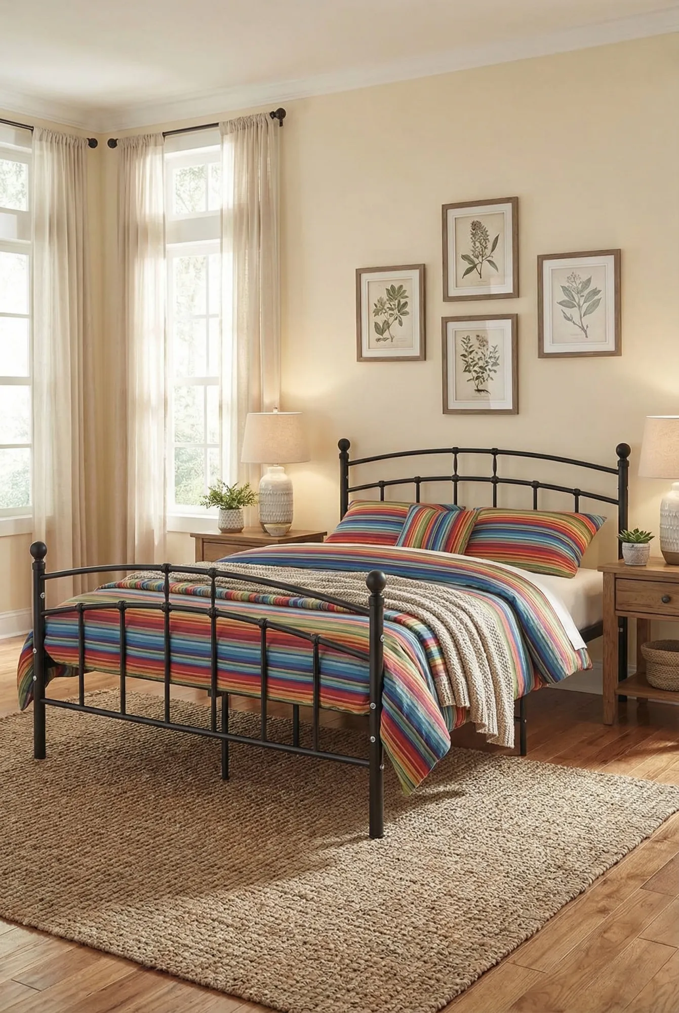 Aranżacja sypialni z metalowym łóżkiem Serafi