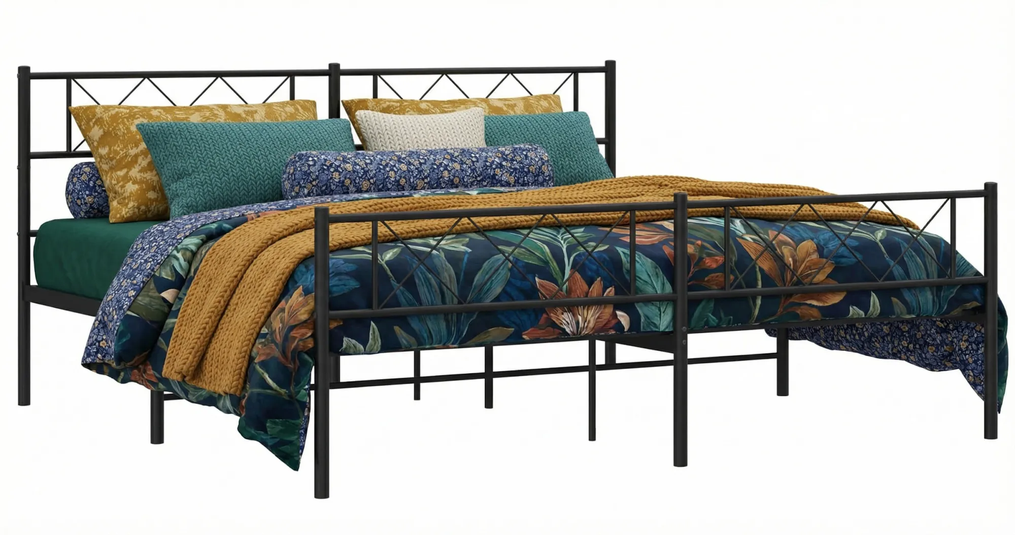 • Metalowe listwy i nogi pośrodku konstrukcji zapewniają optymalne podparcie dla materaca oraz jego wentylację, obiecując zdrowy i spokojny sen.