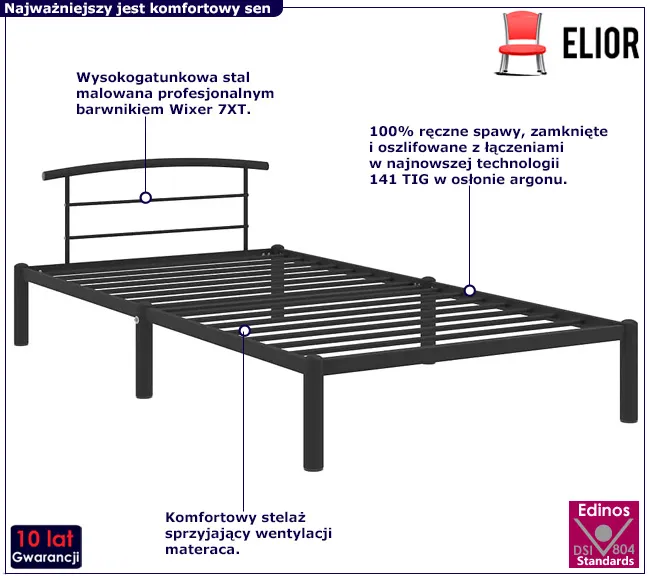 • Metalowa powierzchnia sprawia, że utrzymanie łóżka w nienagannym stanie jest niezwykle łatwe i przyjemne.