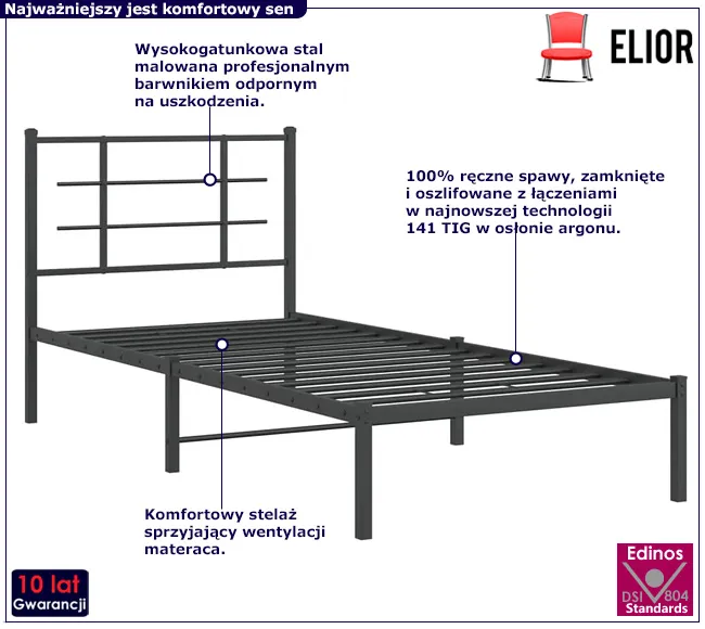 • Kolor: czarny. W naszej ofercie posiadamy także inne łóżka metalowe.  Kliknij i stwórz swój wyjątkowy zestaw mebli.