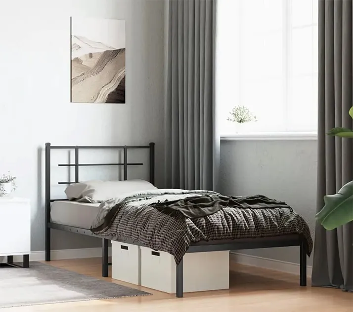 Czarne metalowe łóżko pojedyncze 80x200 cm - Laxo