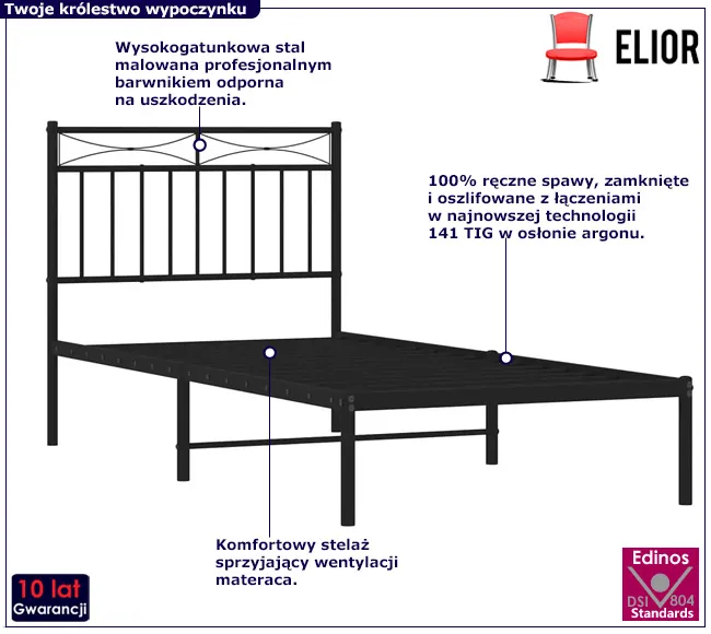 • Kolor: Czarny. W naszej ofercie posiadamy także inne łóżka metalowe.  Kliknij i stwórz swój wyjątkowy zestaw mebli.