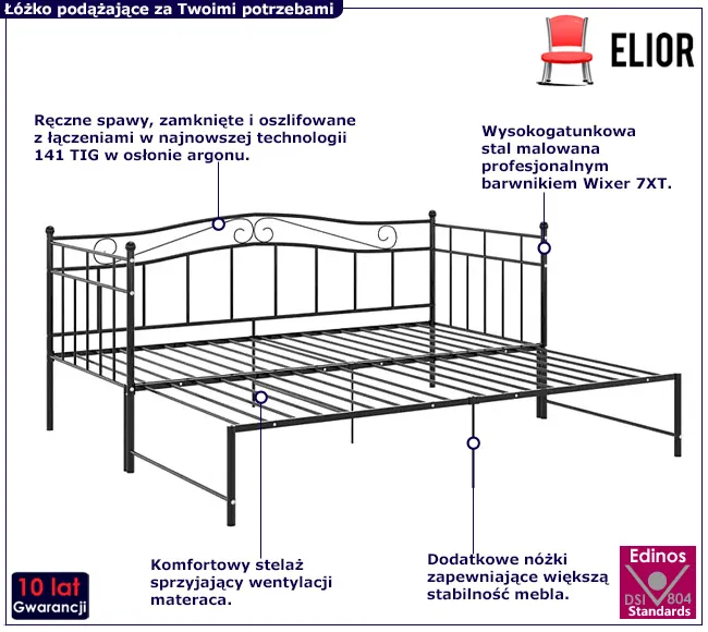 Dotyczy: Szare metalowe łóżko rozkładane 90x200 cm - Delkis