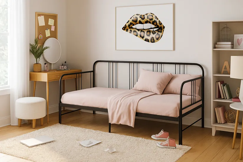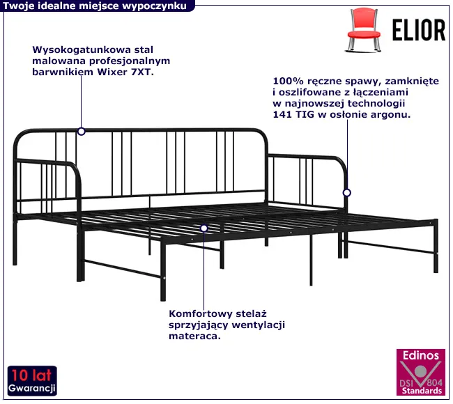Dotyczy: Szare rozkładane metalowe łózko 90x200 cm - Travelo
