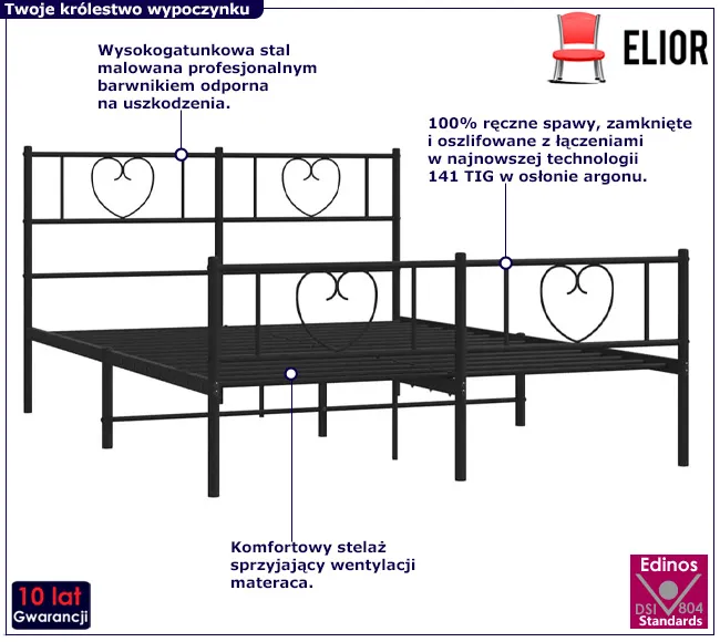 Czarne duże metalowe łóżko Edelos