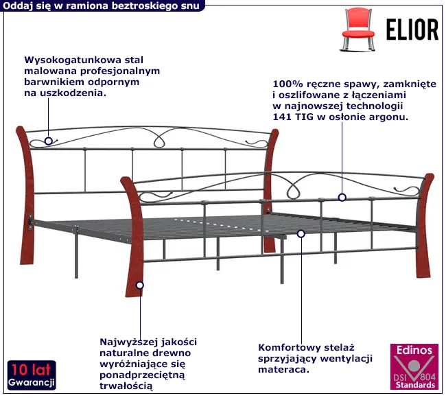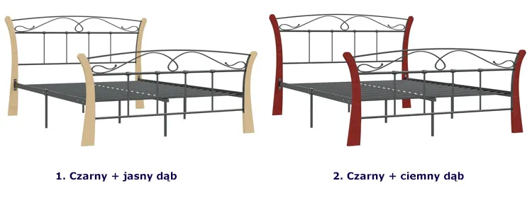 • Kolor: czarny + ciemny dąb. W naszej ofercie posiadamy także inne łóżka metalowe.  Kliknij i stwórz swój wyjątkowy zestaw mebli.