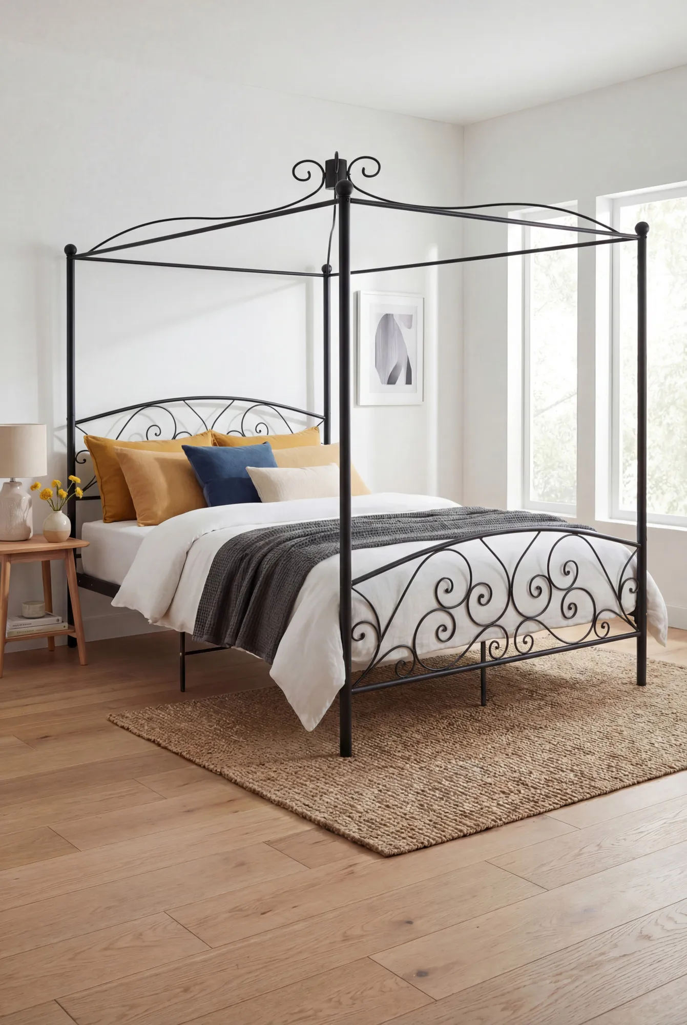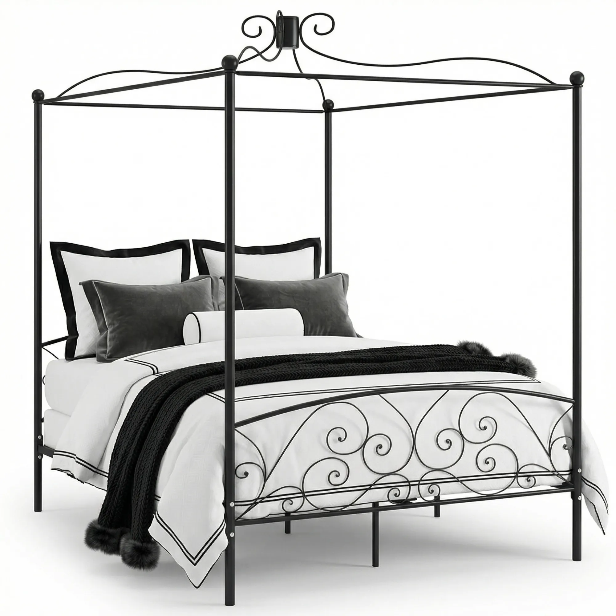 Czarne metalowe łóżko z baldachimem Ifrexi