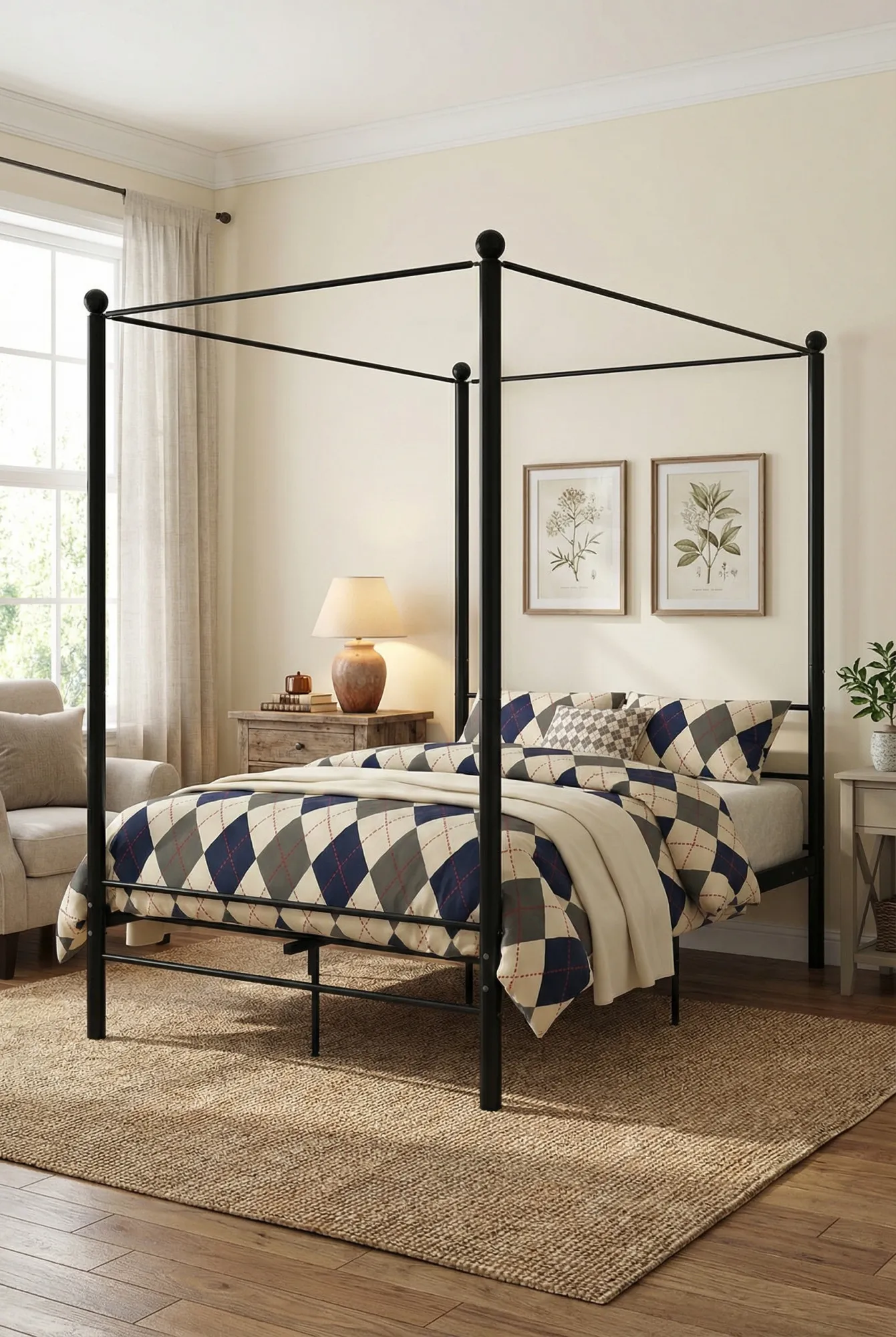 Dotyczy: Szare podwójne łóżko z baldachimem 140x200 cm - Aveiro