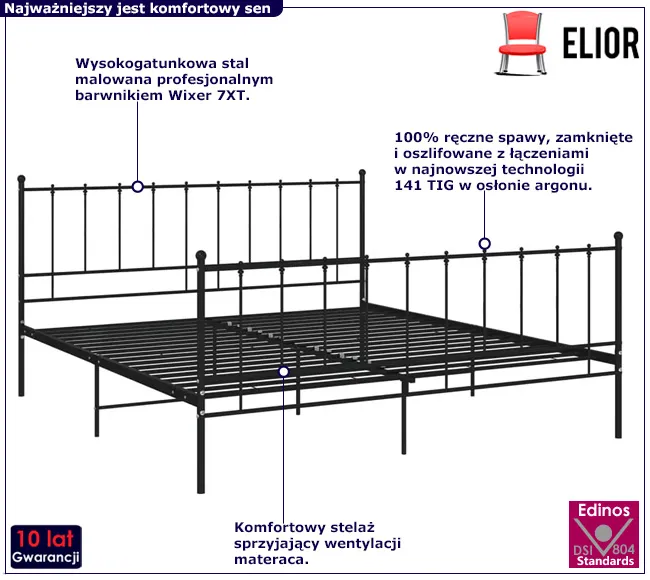 Dotyczy: Szare metalowe łóżko małżeńskie 200x200 cm - Laxi