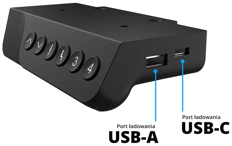 • Zintegrowane porty USB: praktyczne ładowanie urządzeń bezpośrednio z biurka.