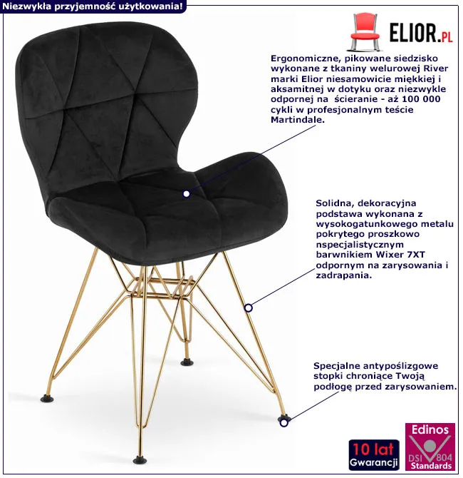 Dotyczy: Granatowe krzesło welurowe na złotych nogach - Amra 3X