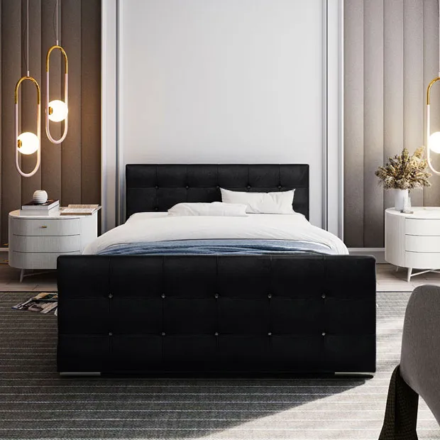 Dotyczy: Welurowe tapicerowane łóżko w kolorze jasnego błękitu 5 rozmiarów - Estelio