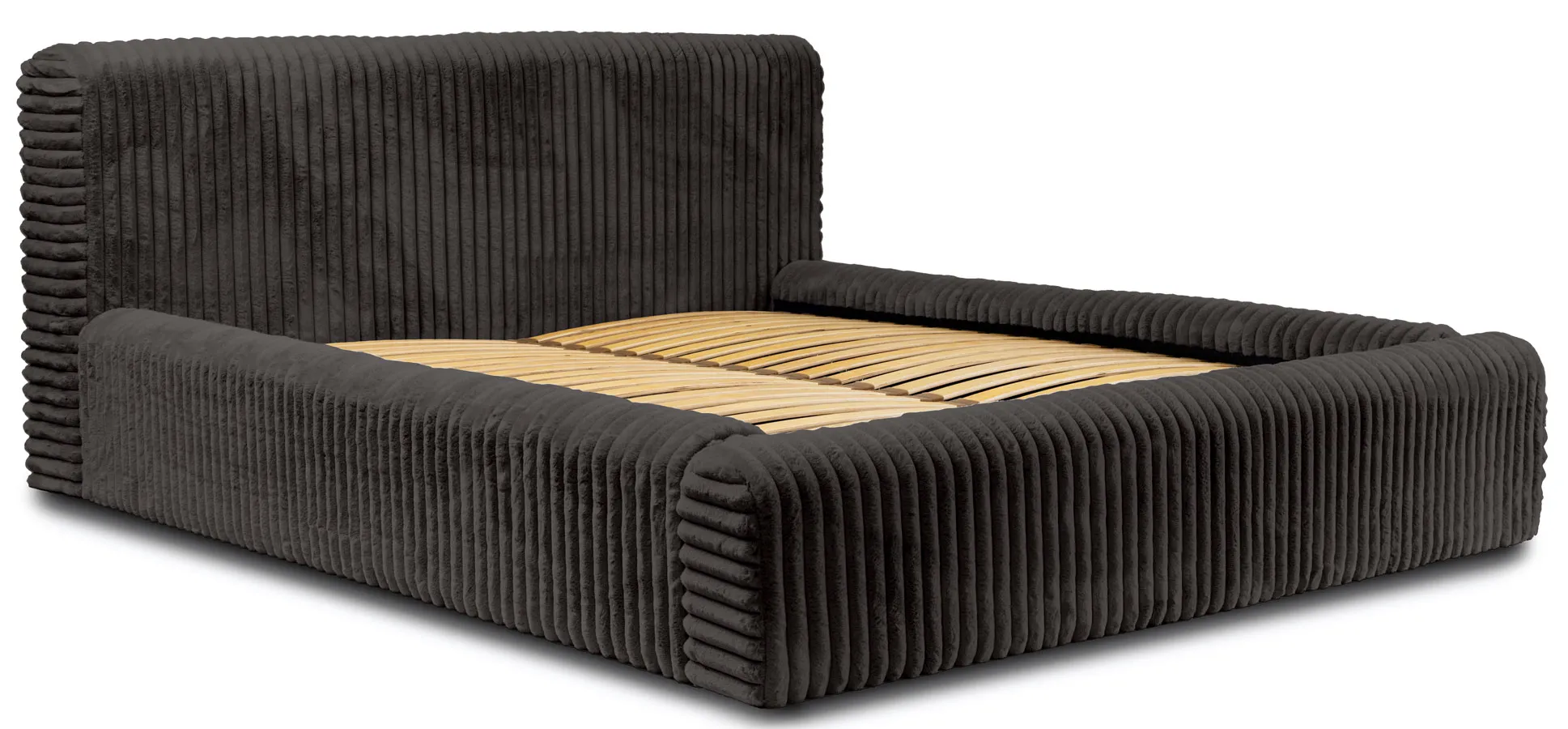 Czarne nowoczesne łóżko tapicerowane z pojemnikiem na pościel Modo - 3 rozmiary