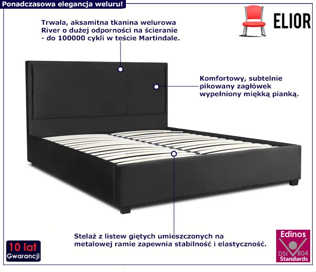 • aksamitna tapicerka dodaje całej konstrukcji szlachetności i sprawia, że łóżko doskonale się prezentuje