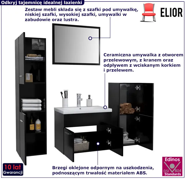 Dotyczy: Wiszący komplet mebli łazienkowych z umywalką 60 biały połysk - Coda 3X