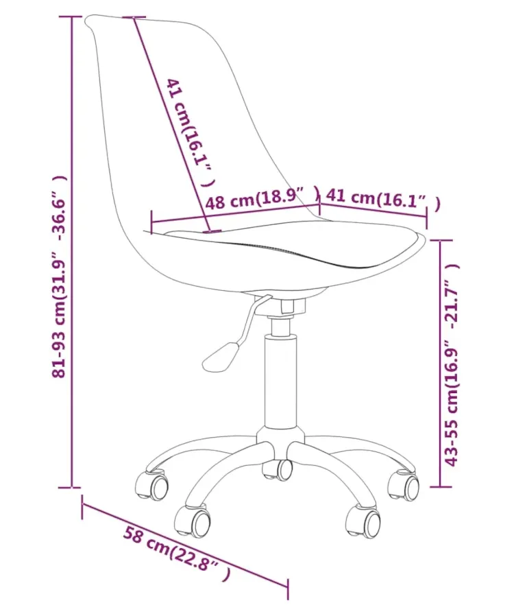 • Wymiary całkowite: szerokość: 48 cm, głębokość: 58 cm, wysokość: 81-93 cm.