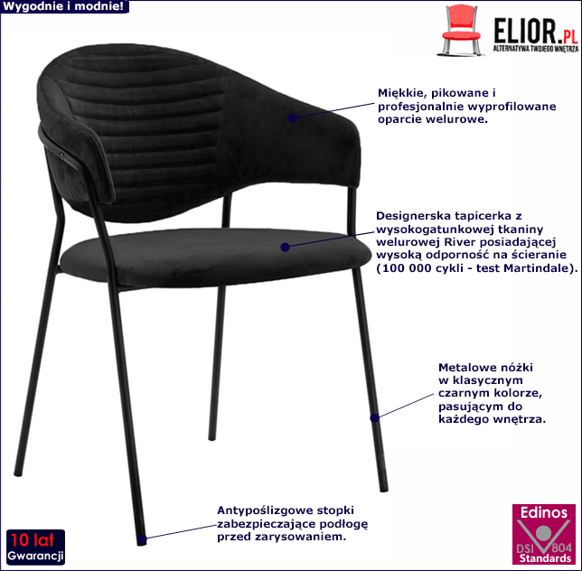 • Kolor: Czarna tapicerka i czarne, matowe nóżki. Kliknij w link i zobacz też inne czarne krzesła w sklepie Edinos.pl - na pewno znajdziesz coś dla siebie!
