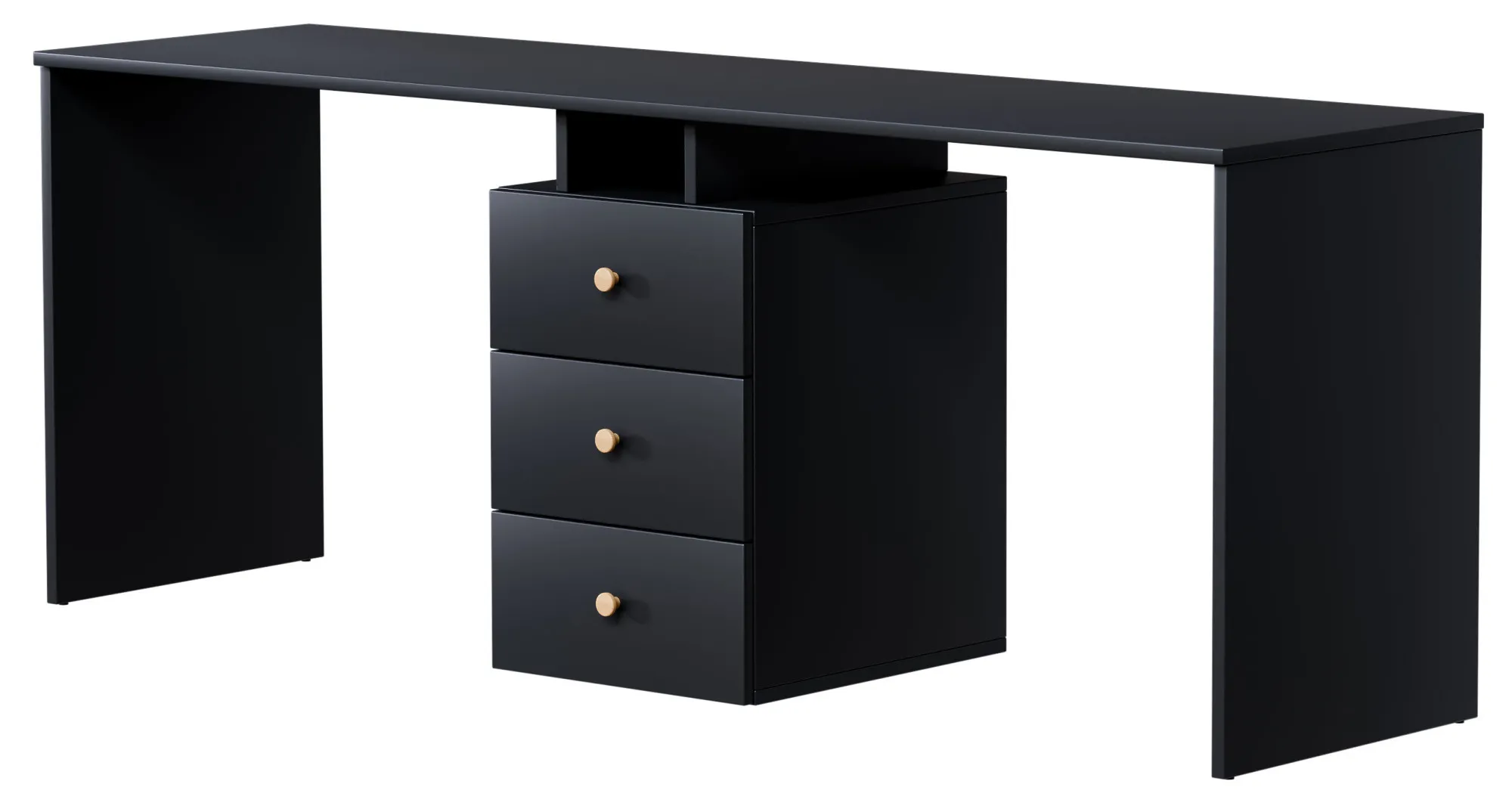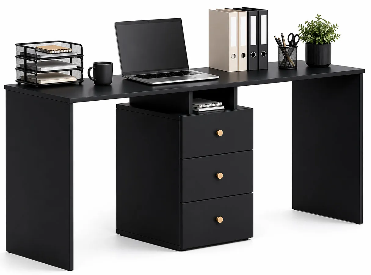 Czarne podwójne biurko z szufladami - Tadoro 3X
