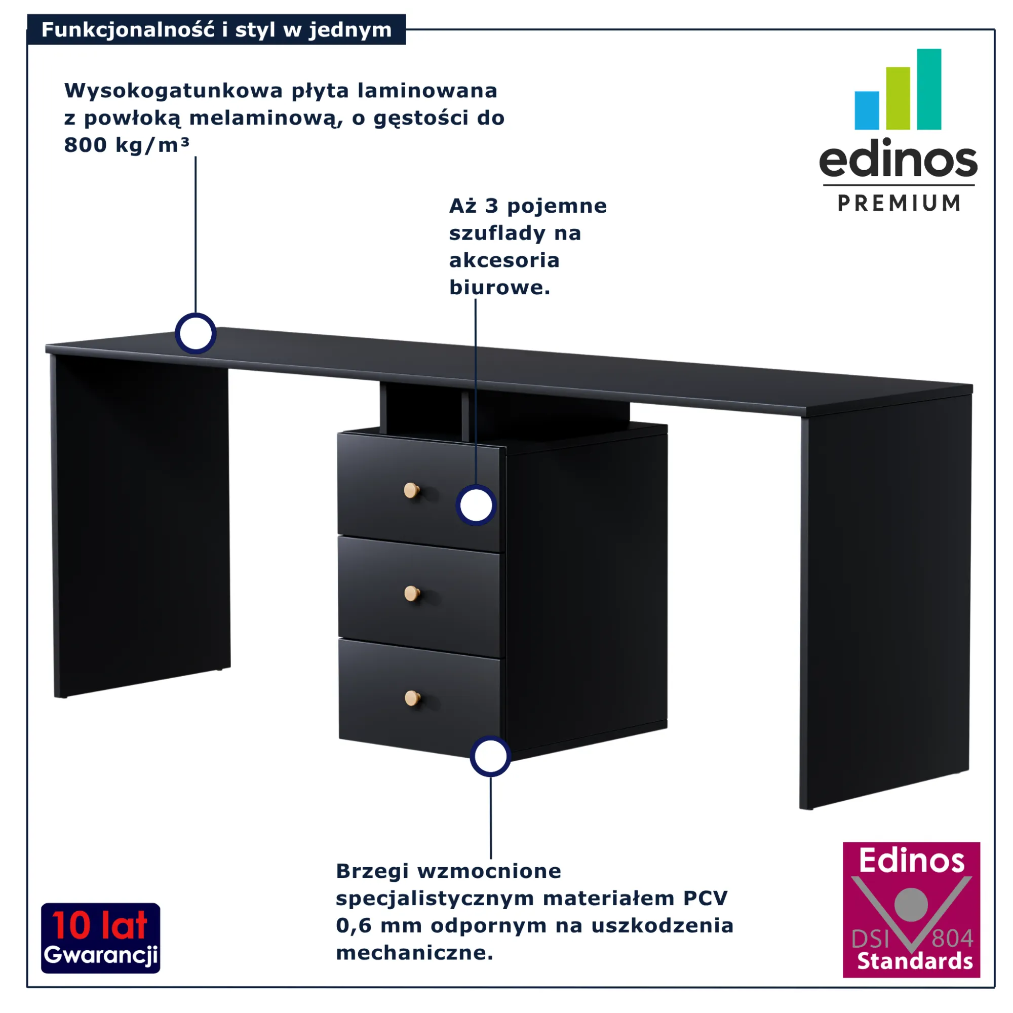 Czarne duże biurko dwuosobowe z szufladami Tadoro 3X