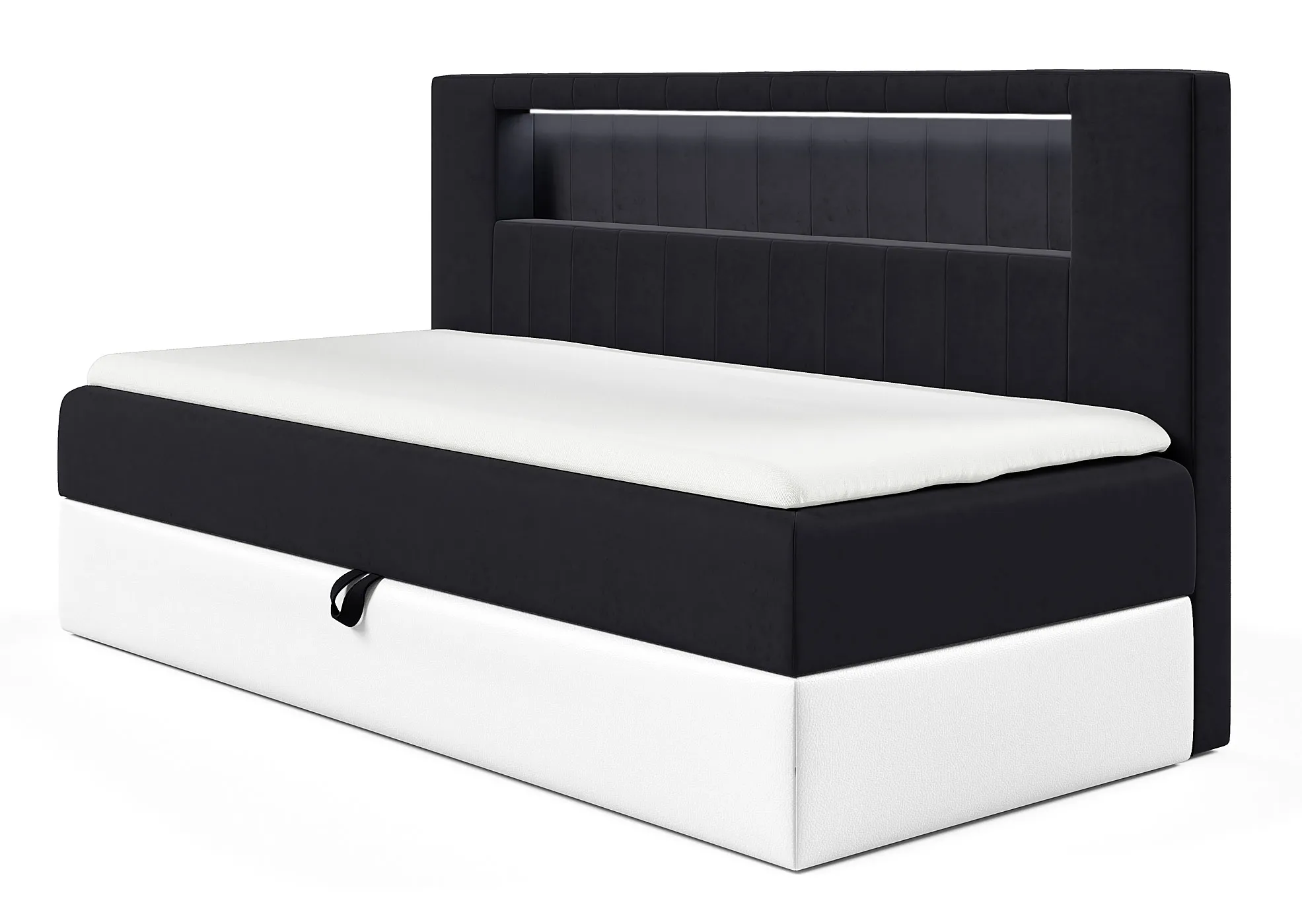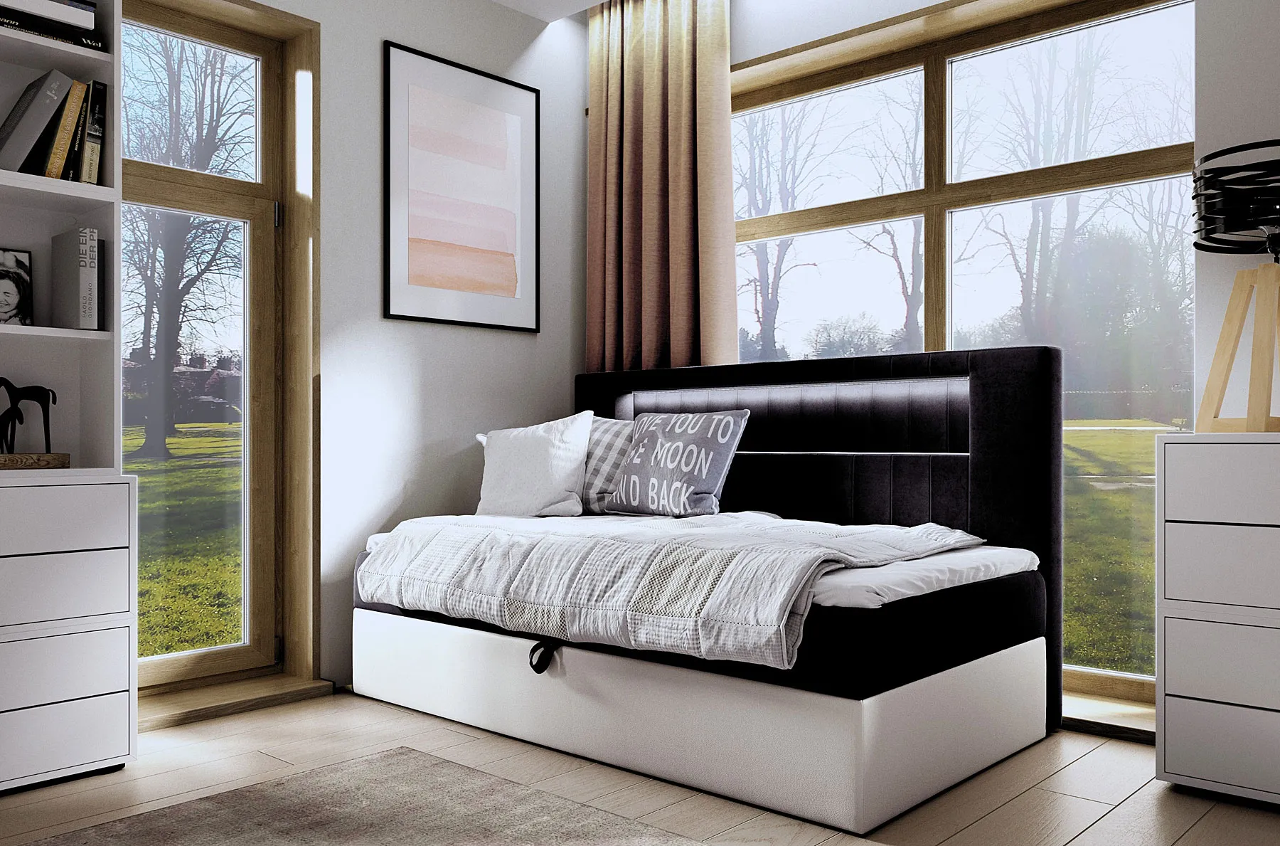 Czarne pojedyncze łóżko kontynentalne z pojemnikiem 3 rozmiary - Lorvani