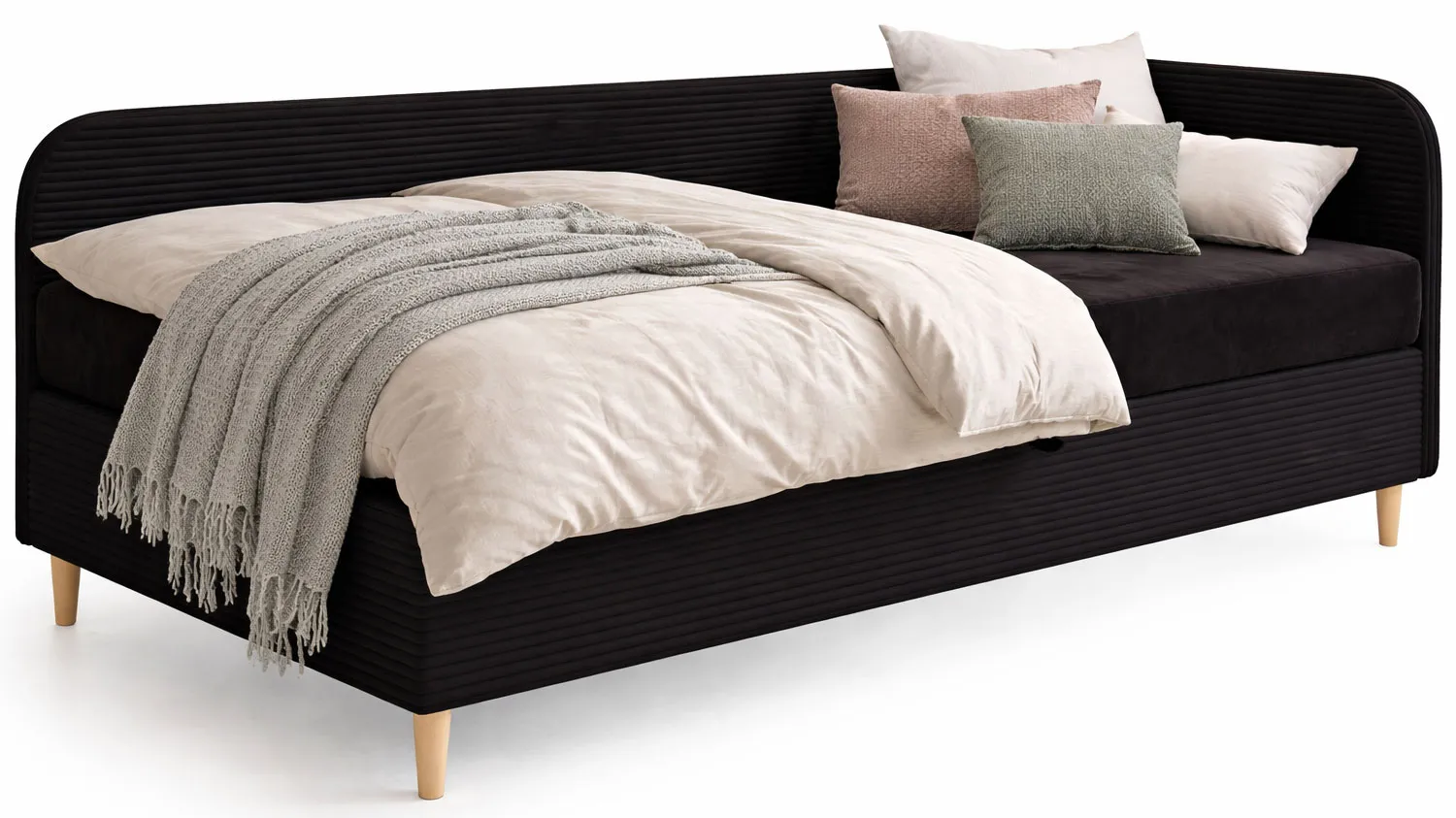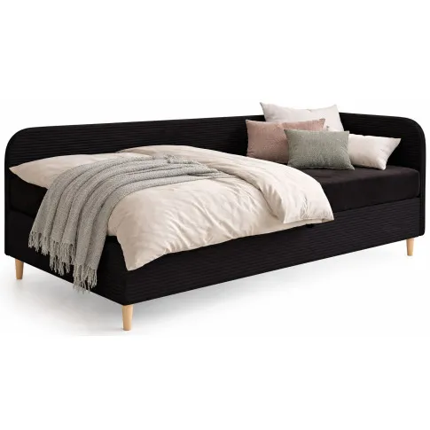 Czarne prawostronne łóżko z materacem i pojemnikiem na pościel 100x200 - Eliza 5X