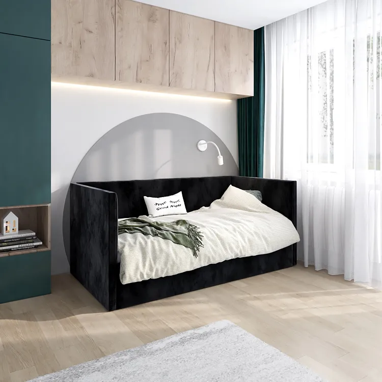 • Design, który przyciąga wzrok: Nowoczesna forma otulona francuskim welwetem nadaje wnętrzu charakteru i wprowadza nutę luksusu.