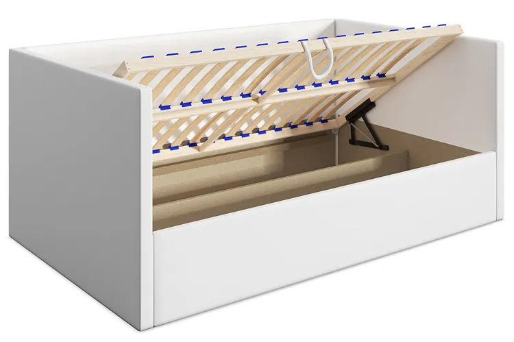• Pojemnik na pościel: Łatwo otwierany dzięki metalowym siłownikom sprężynowym pojemnik ułatwia przechowywanie, gwarantując porządek w pokoju.