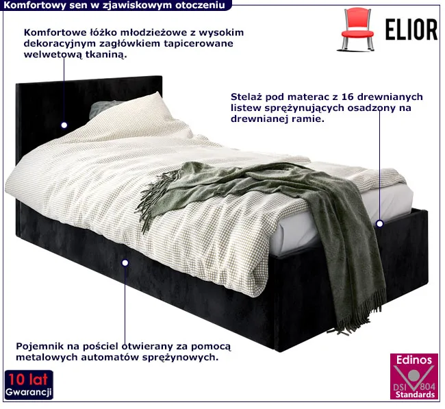 Dotyczy: Popielate łóżko z pojemnikiem Huzox 3X - 4 rozmiary