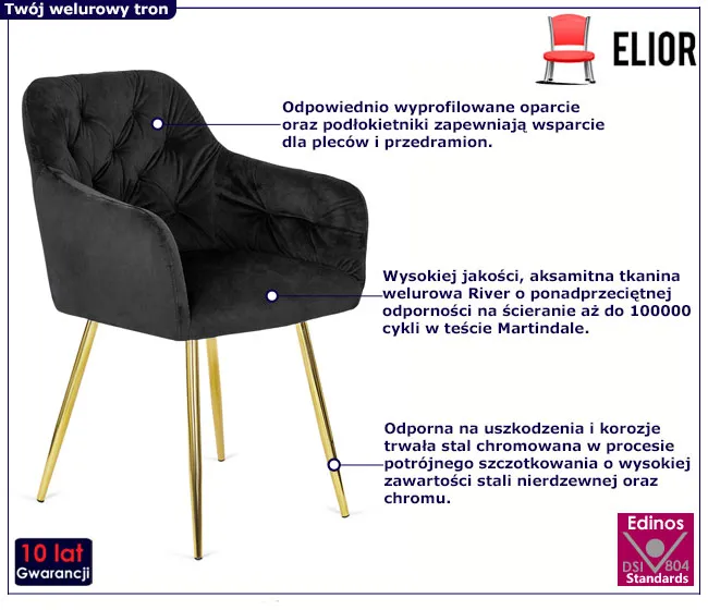 Dotyczy: Szare pikowane krzesło glamour z podłokietnikami - Wesario